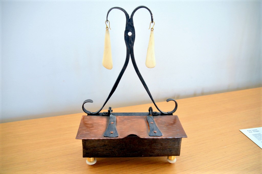 Ein Wind- und Klangspiel, eine kleine Schatulle und ein Objekt mit vielen kleinen Spiegeln (Titel: „Erkenne dich selbst“) komplettieren die Sammlung Peter Amanns.