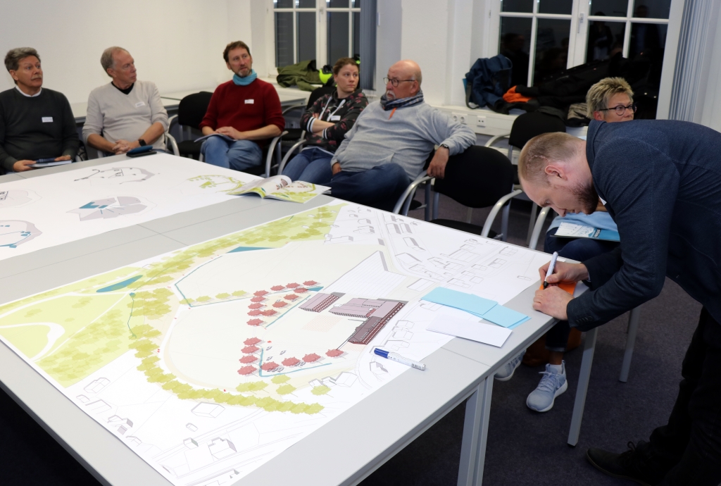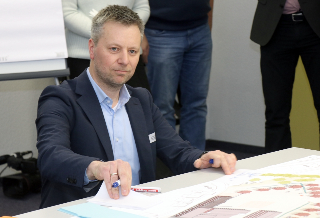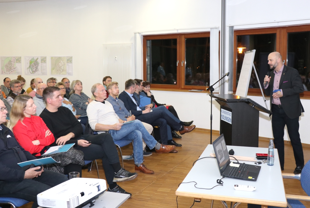 Oberbürgermeister Tim Kurzbach betonte in seiner Begrüßung: „Wir nehmen die Beteiligung unserer Bürgerinnen und Bürger sehr ernst. Denn es geht um die Zukunft unserer Wirtschaft. Die Entwicklung des Standortes Stöcken trägt dazu bei, Arbeitsplätze für die nächsten Jahrzehnte zu schaffen und zu sichern.“ Zahlreiche Gedanken sprudelten aus den rund 60 Besucherinnen und Besuchern der beiden Kreativ-Workshops im Gründer- und Technologiezentrum Solingen nur so hervor – von der möglichen Teilintegration von Wohnnutzungen über ein Digitalmuseum als möglicher Zwischennutzung bis hin zu elektromobilen Ansätzen einer Korkenziehertrasse 2.0 sowie die Ansiedlung universitärer Einrichtungen. Teils wurde auch kontrovers diskutiert.