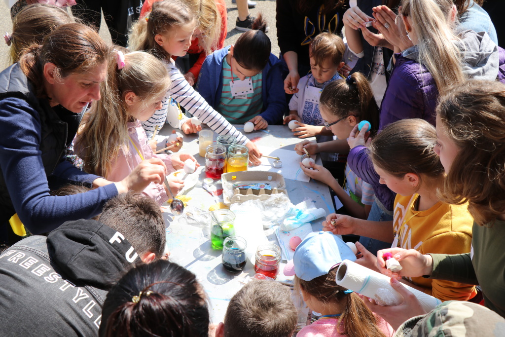 Denn gerade für die zahlreich anwesenden vor allem Frauen und Kinder aus der Ukraine waren Messe und Fest ein Stück Heimat in der Fremde, betonte der katholische Krankenhausseelsorger. Die Künstlerinnen und Künstler der Güterhallen hatten am Sonntag ihre Ateliers geöffnet und boten eine ganze Reihe Mitmach-Aktionen vor allem für Kinder an. Zum Beispiel konnten Ostereier bunt bemalt werden. Auch das Spielmobil war vor Ort und baute eine Hüpfburg und eine Rollrutsche auf. Und natürlich war auch für das leibliche Wohl gesorgt. Am Sonntag konnte man im Südpark fast ausschließlich strahlende Gesichter sehen. Ein Fest der Hoffnung!