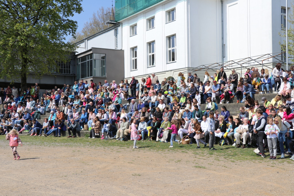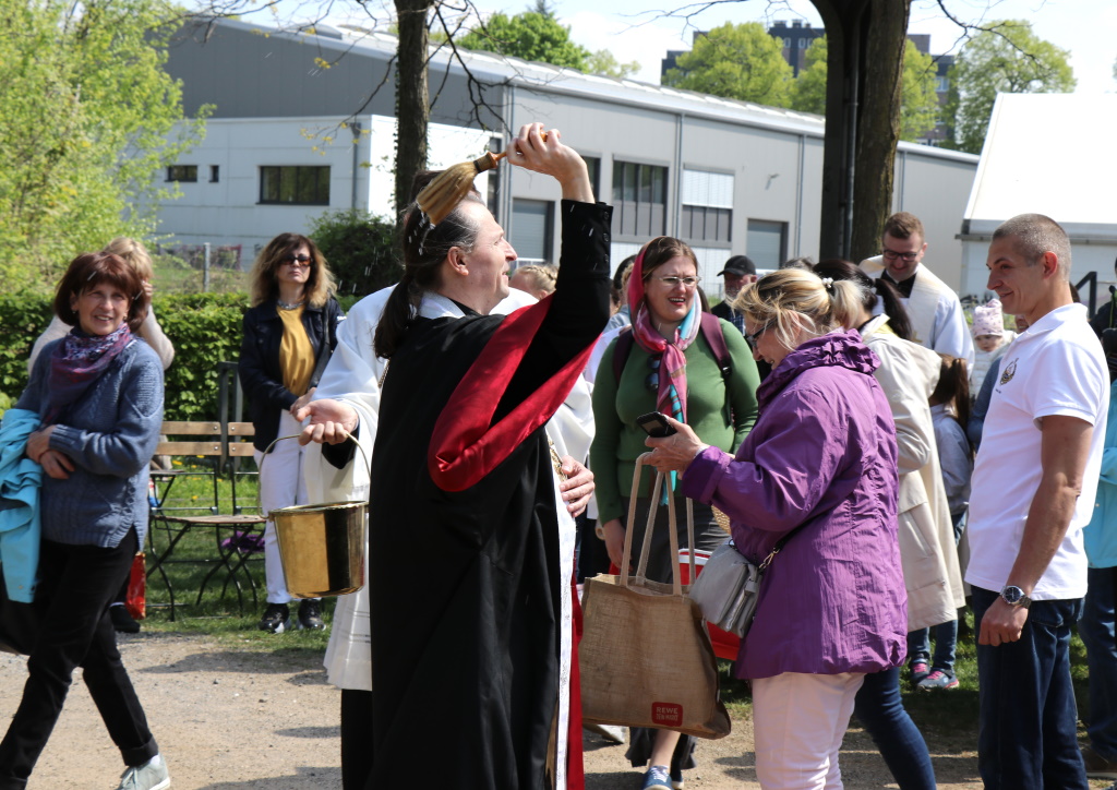 SOLINGEN (bgl) – Der Anlass war auf der einen Seite ernst und traurig, auf der anderen Seite war die Umsetzung das genaue Gegenteil, nämlich kunterbunt, ausgelassen und überaus fröhlich. Tausende Menschen kamen am Sonntag bei bestem Wetter in den Südpark, um gemeinsam mit Flüchtlingen aus der Ukraine das orthodoxe Osterfest im Rahmen eines Open-Air-Gottesdienstes zu begehen. Und gleichzeitig ein Begegnungsfest zu feiern, das zahlreiche Kooperationspartner in und um die Güterhallen möglich machten.