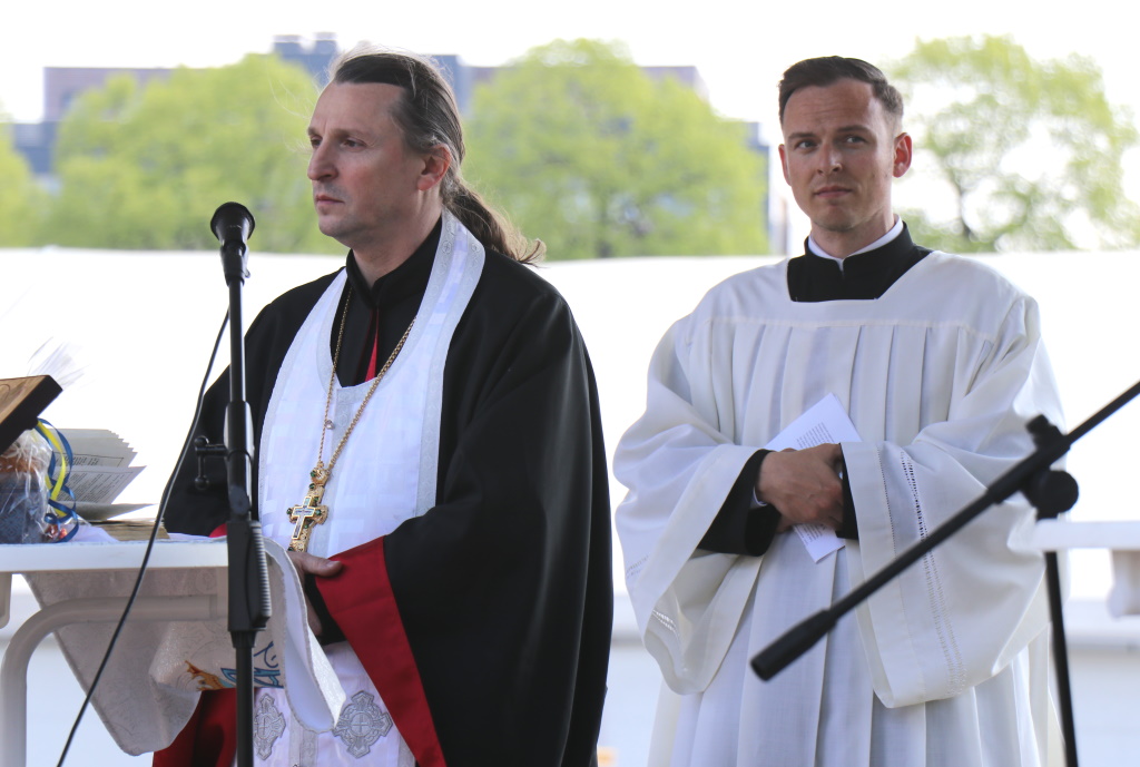 Kaplan Michael Fetko ist in der Ukraine geboren und aufgewachsen. Mit seiner Frau lebt der katholische Geistliche in Solingen. Er arbeitet als Krankenhausseelsorger im Klinikum. Am Sonntag zelebrierte er gemeinsam mit den Vertretern der orthodoxen und evangelischen Kirche die Messe. „In der Ukraine ist es fast schon normal, dass man zweimal Ostern feiert. Vergangenes Wochenende feierte die römisch-katholische und die evangelische Kirche das Osterfest, eine Woche später feiern die orthodoxe und auch die griechisch-katholische Kirche Ostern“, erläuterte Fetko am Sonntag.
