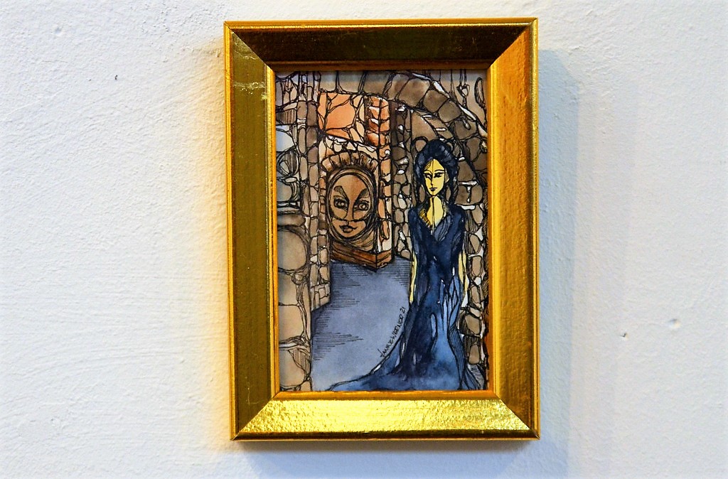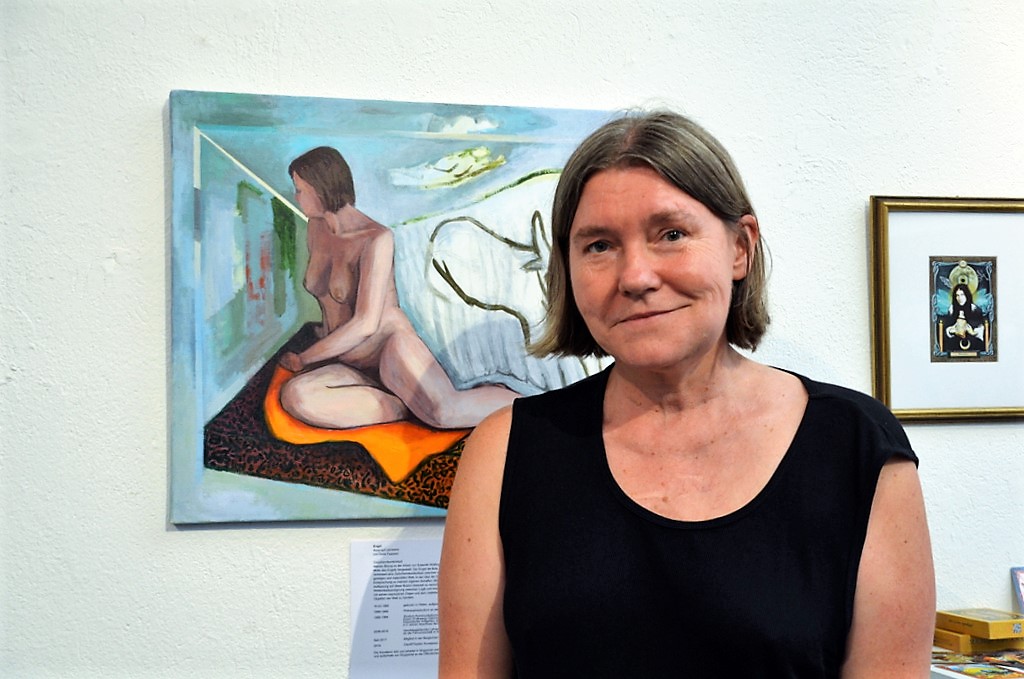Janine Werner vom Atelier AndersARTig kennt die Galeristin seit rund 30 Jahren. „Ich finde ihre Kunst einfach großartig, auch das, was sie in Amerika auf die Beine gestellt hat.“ Nach Endrijautzkis Rückkehr nach Deutschland wurde der Kontakt wieder enger. „Am Thema Sulamith Wülfing gefällt mir besonders, dass sie sich immer schon mit dem Frauenbild auseinandergesetzt hat. Das ist genau die Thematik, mit der auch ich mich befasse.“ Neben einem größeren Werk hängt von Janine Werner auch eine Miniatur aus Aquarell und Tusche auf Papier an der Wand.