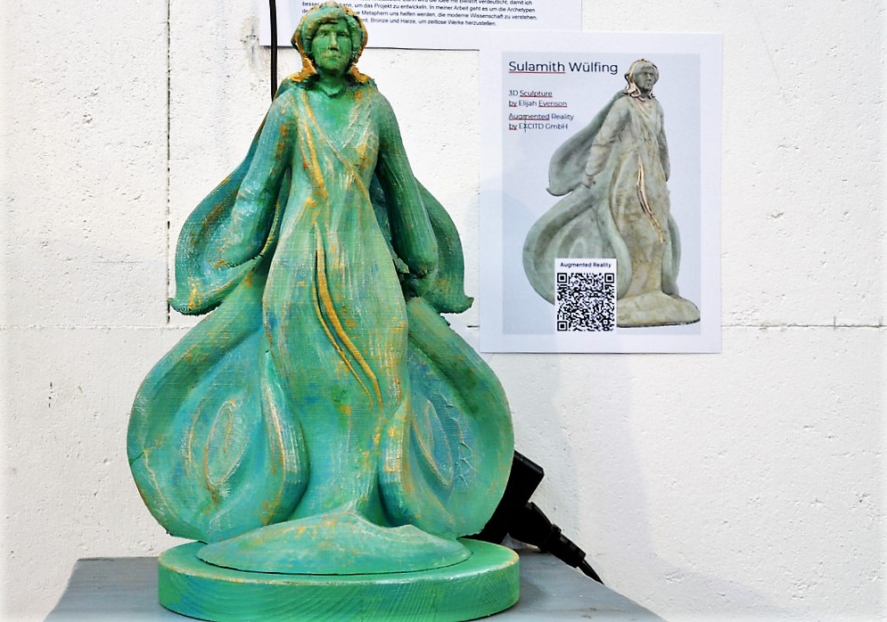 SOLINGEN (mh) – Die Wuppertaler Künstlerin und Galeristin Yvette Endrijautzki präsentierte am vergangenen Samstag als Höhepunkt ihres Herzensprojektes „120 Jahre Sulamith Wülfing – die vergessene Tochter der Stadt“ eine beeindruckende Vernissage mit regionalen, nationalen und internationalen Künstlerinnen und Künstlern im Atelier Pest-Projekt im Südpark. Sie alle hatten sich mit der 1989 im Alter von 88 Jahren verstorbenen Illustratorin auseinandergesetzt und auf ihre ganz persönliche Art interpretiert. Begleitend zu diesen Arbeiten hatte die Firma EXCIT3D, spezialisiert auf 3D-Druck, Augmented- und Virtual Reality, die historische Figur virtuell wiederbelebt.
