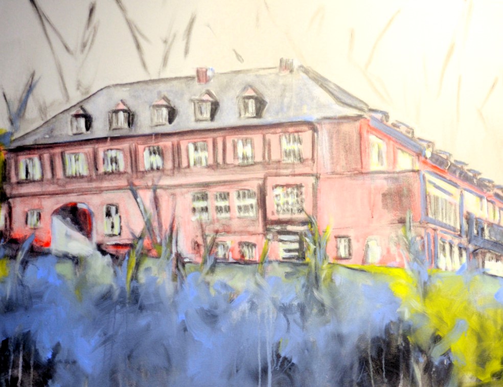 „Ich hatte mir zunächst überlegt, welche Motive spannend sein könnten“, so die Künstlerin, die gerne in Serie arbeitet. Angefangen hatte sie mit Stillleben, darunter viele Erinnerungsstücke. Erweitert wurde die Sammlung durch Randgeschehen, wie die Abbildung eines Tischrandes und des jeweiligen Tischbeines. Die Konzepte für ihre künstlerische Arbeit entwickelt Müller-Kölmel aus Erinnerungen, aber auch Lebenserkundungen. Sie lässt sich vom Zeitgeschehen anregen und von alten Familienfotos. „Ich male gerne, fabuliere mit der Farbe. Sie löst sich auf, verändert sich. Dann probiere ich aus.“ Vorwiegend nutzt sie für ihre Malereien Öl, Acryl, Eitempera. Auch Mixtechniken sind darunter. „Ich umkreise einen Themenkomplex von vielen unterschiedlichen Seiten. Ich habe das Thema und das Material. Dann schaue ich, wie sich das Ganze auf der Leinwand weiterentwickelt“, beschreibt sie ihre Vorgehensweise.