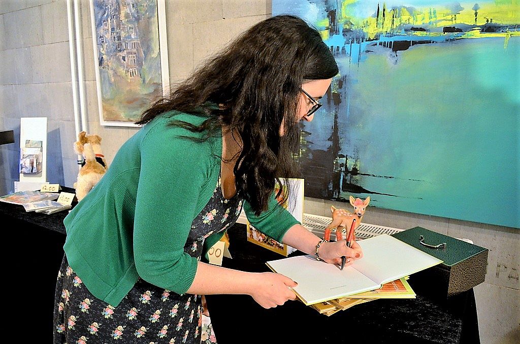 Künstler Ingo Schleutermann hatte Nadine Diab angeboten, ihr Buch im Atelier KünstlerPack vorzustellen. „Sie hat eine ganz eigene Art von Fantasie, etwas schräg im positiven Sinn. Ich mag ihren Erzählstil. Ein behutsames Wählen von Worten, absolut passend und kindgerecht, um ihre Botschaft weiterzugeben.“