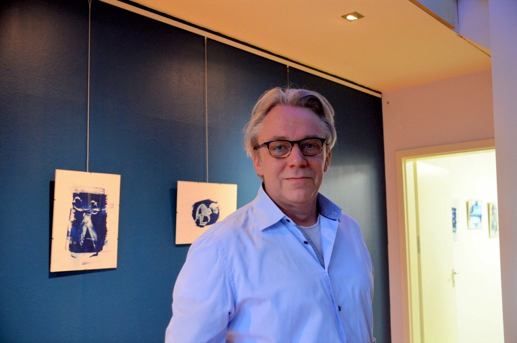 Maryam Sabri und Frank Voß stellten im Atelier Régis Noël ihre Arbeiten zum Titel „We are Blue“ vor: Lichtdrucke mit der Technik aus den Anfängen der Fotografie. „Zuerst schauen sich die Besucher die Bilder genau an, dann fragen sie nach der Technik“, erzählte Frank Voß. „Meist haben sie auch schon einen Vorschlag dazu.“ Die tatsächliche Lösung verblüffte die meisten.