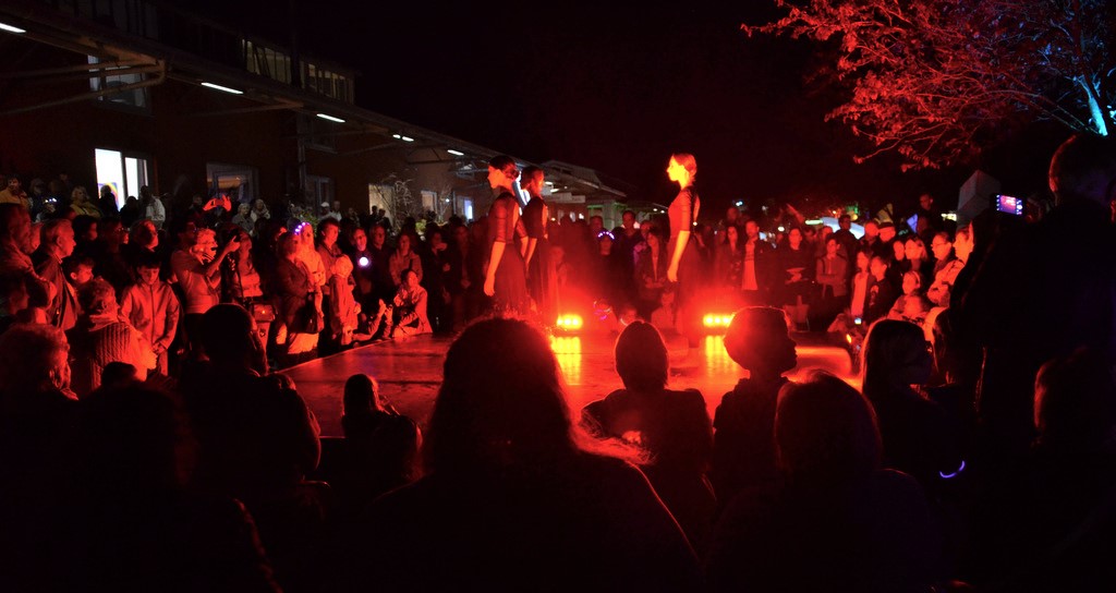 SOLINGEN (mh) – Erstmals fanden die Aktionen der Lichternacht in den Güterhallen nicht nur an der Trassenseite der Galerien, sondern auch auf der Rückseite statt. Das Event war als stimmungsvolles Kulturerlebnis für Jung und Alt gedacht (wir berichteten). Neben Lichtinstallationen, Live-Musik, Literatur und Tanz gab es im Außenbereich faszinierende Show-Acts.