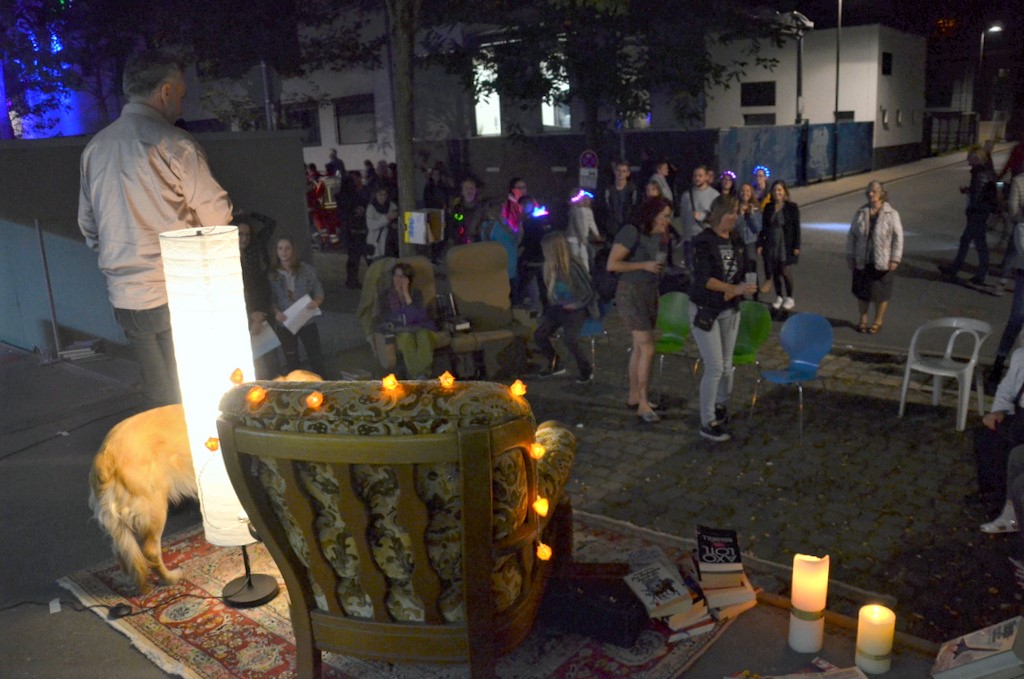 Der Wuppertaler Autor Oliver Buchta hatte eine kunterbunte Erzählschar eingeladen. Vor der Halle 26 nahmen die jungen Literaten ihre Zuhörer mit auf eine Reise in die Welt der Lichtgeschichten. Schüler des Gertrud-Bäumer-Gymnasiums Remscheid waren in Begleitung ihres Lehrers Stefan Barz erschienen. Der Pädagoge ist ebenfalls Krimiautor und beteiligte sich bei der Lesung mit eigenem Text. Die anderen Jungautoren gehörten zur Gruppe LIT.UP, einem Projekt von Jule Pommer sowie aus der Literaturgruppe von Oliver Buchta.