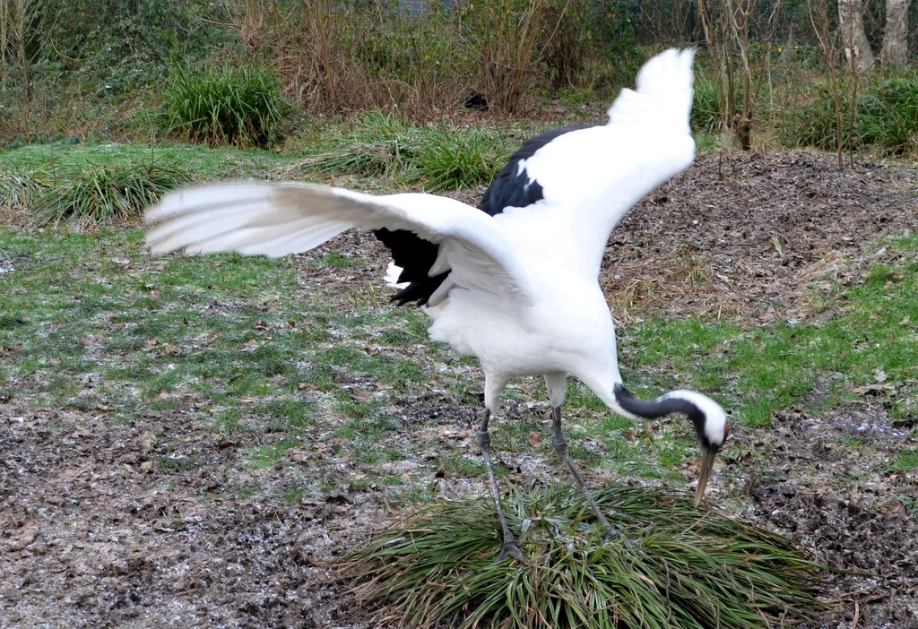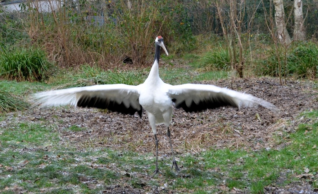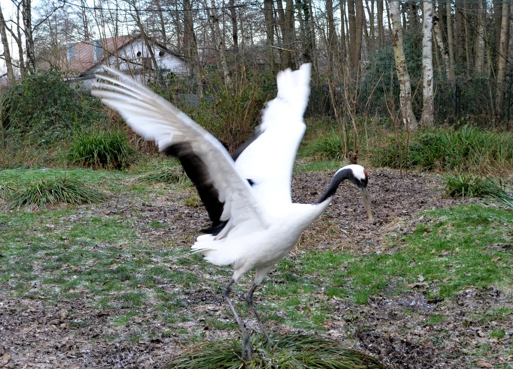 SOLINGEN (mh) – Jeden Morgen ertönt der typische Ruf der Kraniche. Sobald die beiden Mandschurenkraniche das Außengelege der Anlage betreten, erfolgt das klassische Balzritual. Dabei trippelt das Männchen sehr elegant, verbeugt und streckt sich, breitet seine Flügel aus. Auch kleine Stöcke, Steinchen und abgefallene Baumrinde werden gesammelt und der Partnerin als Geschenk zugeworfen. Den Ruf lassen die beiden auch ertönen, wenn die Zugvögel im Frühjahr und im Spätherbst über das Gehege hinwegziehen.
