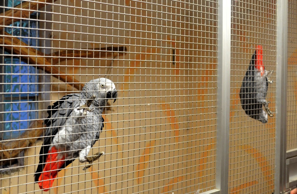 Beginnen wir mit dem Star des Ensembles: Igor! Überraschung – Igor ist ein Weibchen! Das haben die Vorbesitzer wohl übersehen. Aber das macht sie nur noch einzigartiger. Mit einer Körperlänge von 35 cm und einem Gefieder in schickem Grau mit leuchtend roten Schwanzfedern ist Igor nicht nur ein echter Hingucker, sondern auch eine wahre „Quatschbacke“. Die Pfleger schmunzeln oft über ihre quirlige Mitbewohnerin, die es liebt, sich mit den Besuchern zu unterhalten oder einfach mal einen kleinen Plausch mit sich selbst zu führen. Manchmal hustet und schnieft sie vor sich hin. Dann zeigen die Besucher Mitleid mit dem „armen, kranken“ Tier. Außerdem beteiligt sich Igor mit Kommandos intensiv an der Erziehung des noch jungen Tierparkhundes Poldi – ein echter Spaßvogel.