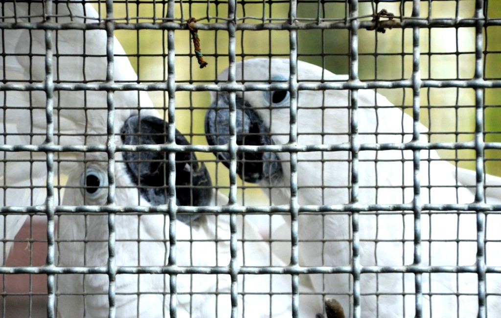 Altersmäßig passen die beiden Weißhaubenkakadus hervorragend zusammen. Olli ist jetzt etwa 30 Jahre, Lady fünf Jahre jünger. Nachwuchs wird es bei den beiden allerdings nicht geben. Durch Ollis frühere Kampfaktionen fehlt ihm eine mittlere Kralle. Daher kann er nicht richtig aufsitzen und das Gelege bleibt unbefruchtet.