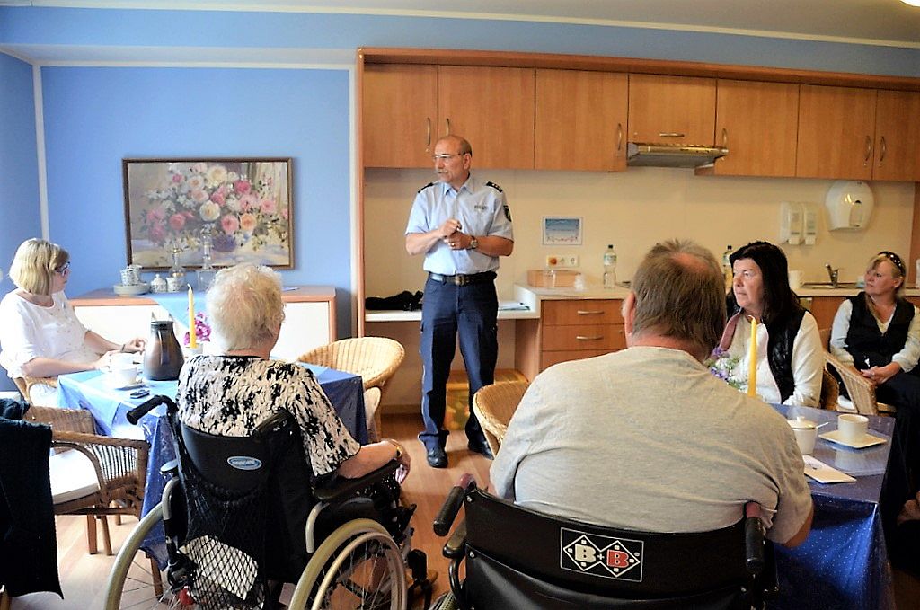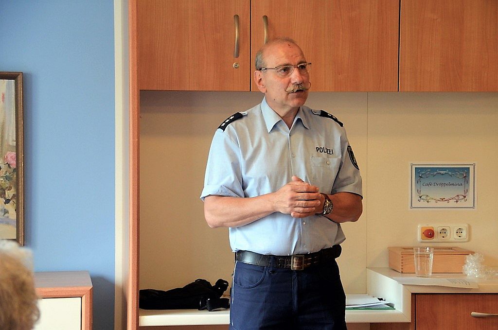 Absolut realistisch, wie die Senioren von allen Seiten bestätigten. Auf die Frage des Polizisten, was denn hier schiefgelaufen sei, fiel ihnen dazu eine Menge ein. Aber es gab ebenfalls Tipps, um solche Situationen zu vermeiden: Das Geld nicht an der Kasse, sondern in einem gesonderten Raum in Empfang nehmen, Jacke mit Innentasche tragen, um nur zwei Möglichkeiten zu nennen. Die Thematik war den älteren Leuten offensichtlich nicht unbekannt,