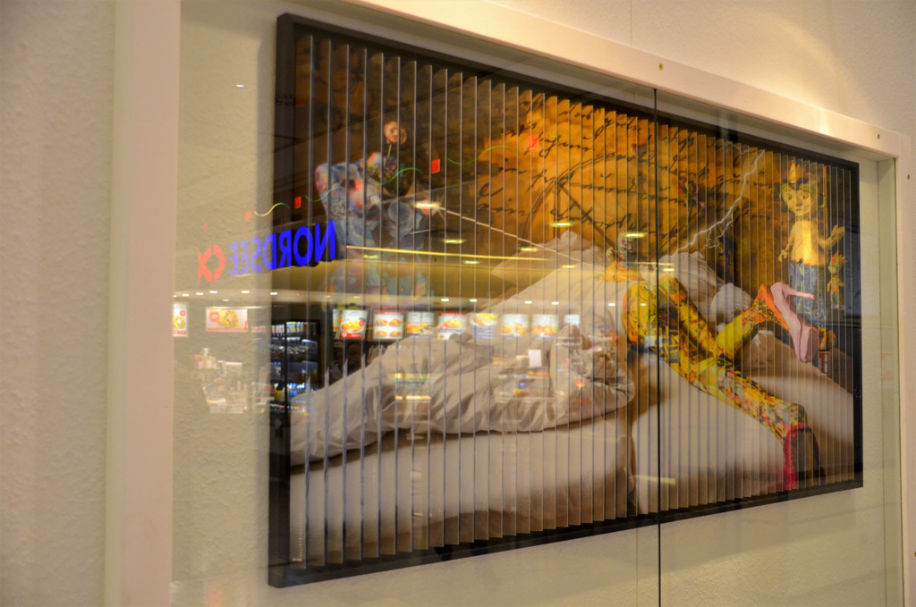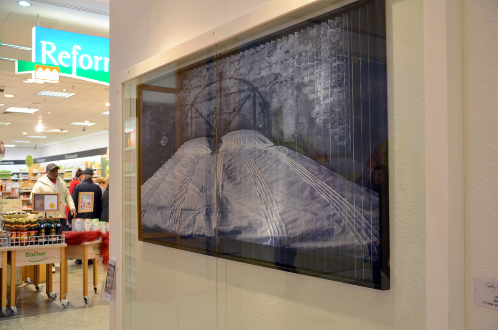 „Man muss die 2SichtBilder einfach im Original sehen und an ihnen vorbeigehen, um die Faszination der beiden ineinanderlaufenden Motive nachvollziehen zu können“, betont Ulli Steinküller. Das tun die City-Arkaden-Besucher ausgiebig. Die Faszination ist ihnen deutlich anzumerken. Gerne befragen sie den Fotografen dazu und der gibt bereitwillig Auskunft. „Diese Möglichkeit, zwei Bilder in einem darzustellen, finde ich wirklich beeindruckend“, bekräftigt eine Besucherin, die mehrfach vor dem Werk „Bettgeschichte“ hin- und hergeht. „Bei der ersten Draufsicht fand ich das etwas komisch. Deshalb wollte ich mir das Bild näher angucken. Dann erst habe ich gemerkt, dass es zwei unterschiedliche Ansichten sind.“