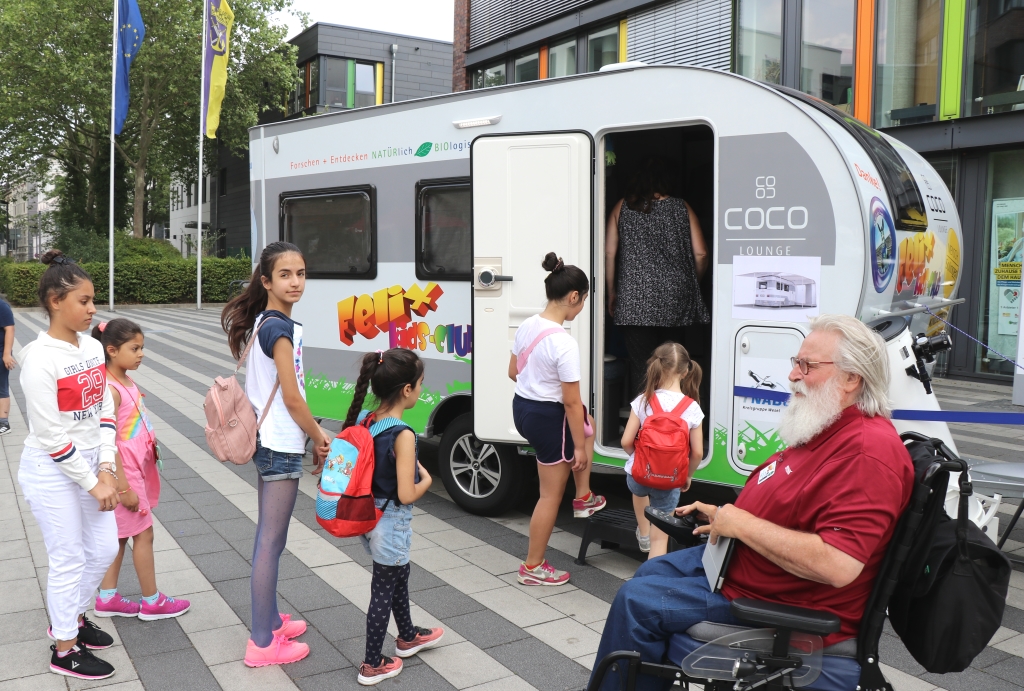 Zum Wohnmobil kam jetzt ein Caravan dazu, in dem zwölf Kinder längs an einem Tisch sitzen können. Dort werden die von den Kids in der Natur gesammelten Exponate demnächst genauestens untersucht und sprichwörtlich unter die Lupe bzw. unter das Mikroskop genommen. Fachkundig angeleitet werden sie dabei vom Naturschutzbund Deutschland (NABU).