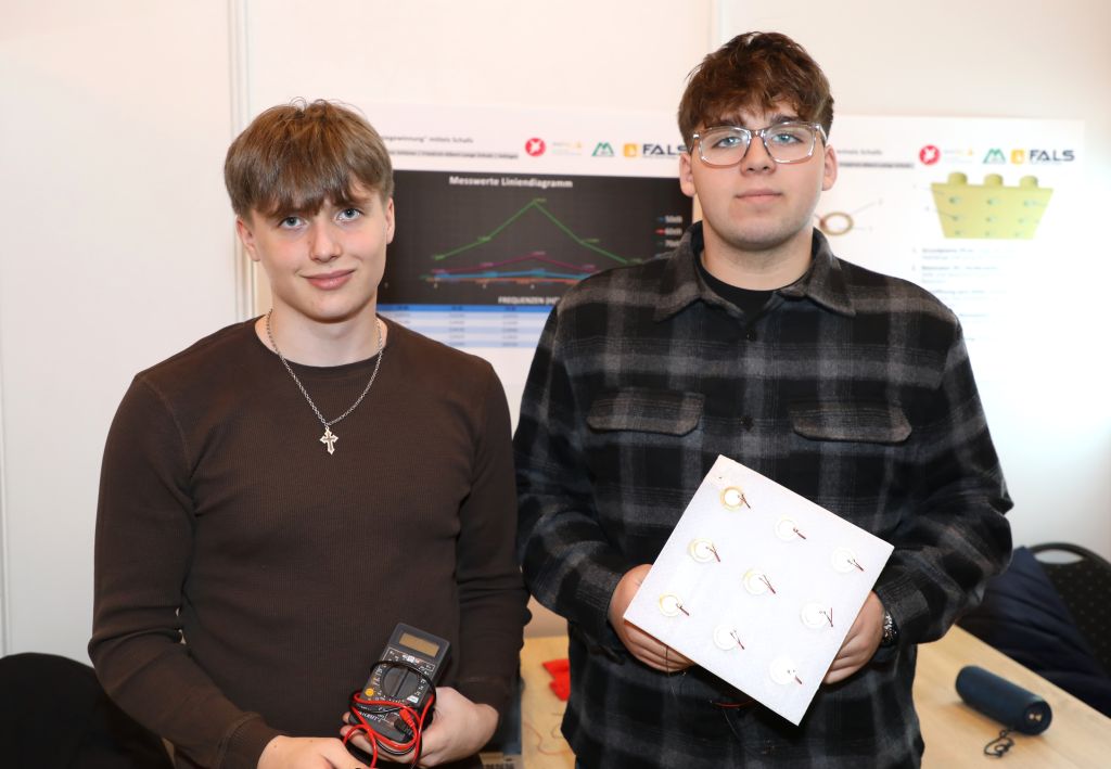 Julian Baumann und Henri Bödiger von der Friedrich-Albert-Lange-Schule aus Solingen präsentierten beim Regionalwettbewerb von "Jugend forscht" ihr Projekt. (Foto: © Bastian Glumm)