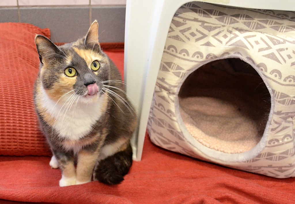 SOLINGEN (mh) – Die aparte Julina mit dem eindrucksvollen weißen Schnurrbart ist eine Katzendame mit ganz besonderer Färbung. Das bei Glückskatzen übliche schwarze Fell hat bei ihr einen eher blaugrauen Ton. Das allein ist schon etwas Besonderes und drei Farben im Fell einer Katze sowieso. Glückskatzen sind meist weiblich, da bei ihnen zwei X- Chromosomen zu finden sind. Dreifarbige Kater sind noch viel seltener, aber leider unfruchtbar. Daher ist die Zucht von Glückskatzen nicht möglich.