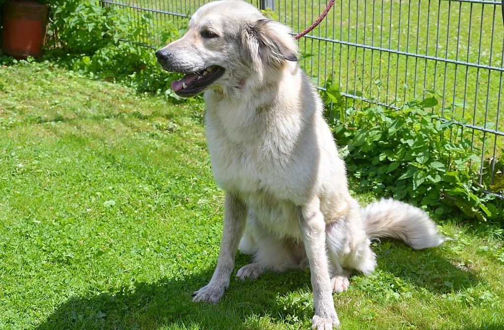 Bei ihrer Aufnahme war die etwa zwei Jahre alte Hündin völlig verängstigt. Sie fürchtete sich vor Menschen, Tieren, Geräuschen – ja, eigentlich vor allem. Durch ausdauerndes Training und intensiven sozialen Kontakt ist aus dem ängstlichen Tier eine fröhliche, lebenslustige und auf den Menschen bezogene Hündin geworden.