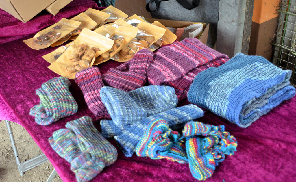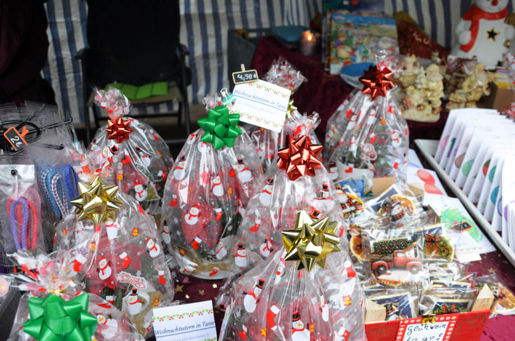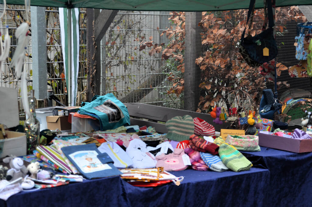 Ehrenamtliche Helferinnen und Helfer hatten im Vorfeld unermüdlich gehäkelt, gebastelt und genäht. Sorgen- und Glückswürmchen lagen friedlich nebeneinander und liebevoll gestaltete Weihnachtskarten fanden schnell begeisterte Abnehmer, ebenso die mit Fett und Vogelfutter gefüllten Tassen zum Aufhängen. Selbstgestrickte Socken, wärmende Mützen, glitzernder Baumschmuck und feine Makramee-Kugeln luden zum Stöbern ein. Ein besonderer Blickfang waren die kleinen farbigen Taschen und Stiftemäppchen von Andrea Wasolewski, die seit Jahren zu den beliebtesten Artikeln gehören. Auch Leckereien wie selbstgekochte Marmeladen und Plätzchen, erfreuten sich großer Nachfrage.