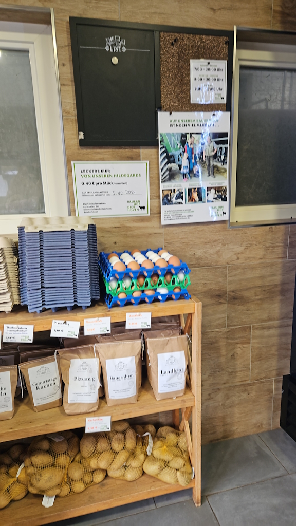 Der Weg führt mich weiter durch die Ortschaft in Richtung Kapelle und hin zu einem ganz besonderen Ziel: dem Bauernhof Dickhoven, gelegen in der Linde 16. Dieser Milchviehbetrieb ist ein Paradies für die ganze Familie. Hier kann man das Landleben hautnah erleben – vom Kälbchen Kindergarten über die Hoflädchen mit einer Milchtankstelle und regionalen Spezialitäten wie Kartoffeln, Wurstwaren der Metzgerei Plüming, Honig und vielen anderen Köstlichkeiten bis hin zu einem Besuch der Pensionspferdehaltung. Die Hof-Stars des Betriebs sind der stolze Hahn Olaf und seine Hennen, die alle den Namen Hildegard tragen. Wer viel Zeit hat, sollte hier einen Stopp einlegen und das Landleben genießen.
