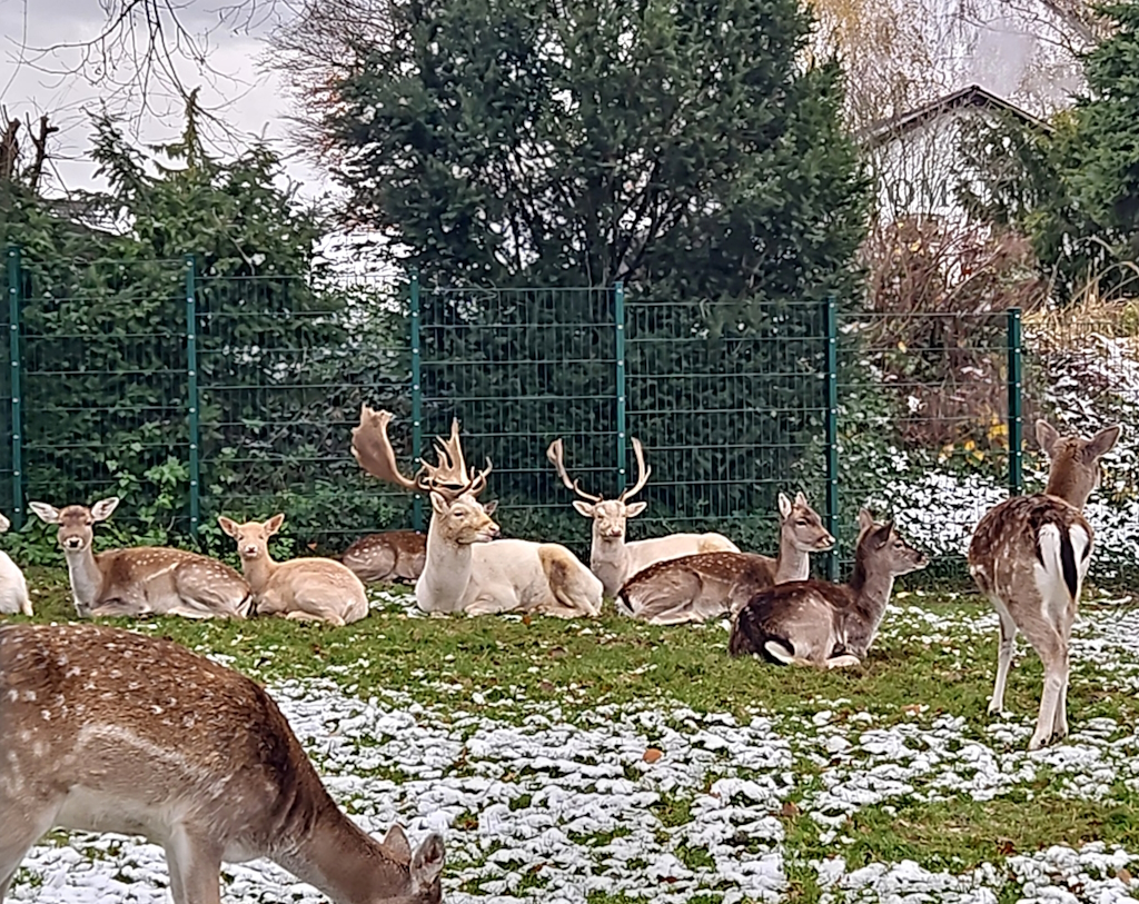 Meine Wanderung endet schließlich wieder am Wildgehege, wo sich die Tiere an dem Winterkraftfutter, das ich zu Beginn gekauft habe, erfreuen. Ein perfekter Abschluss für eine winterliche Entdeckungsreise durch die Region um den Gravenberg.