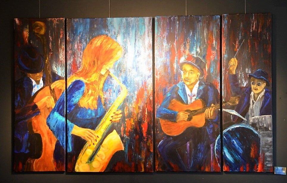 Die Vierte im Bunde ist Christina Haupts (*1962 in Geislingen). Sie möchte mit ihren Bildern Geschichten erzählen. Stimmungen und Gefühle setzt sie gekonnt in Farbenspielen um.