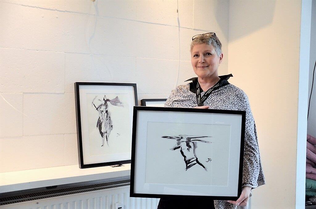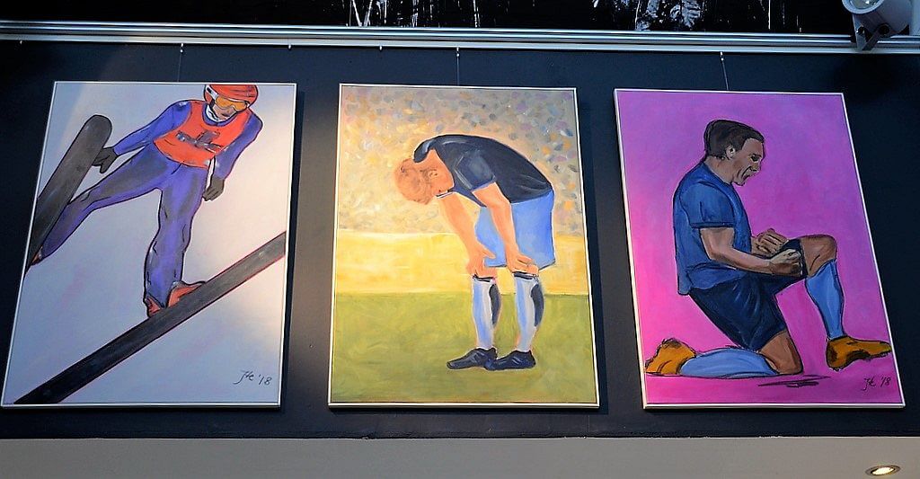 „Ich habe mein Hobby erst entdeckt, als ich meinen Beruf aufgegeben habe“, sagt Ilona Heller (*1958 in Hilden). Sie aquarelliert gerne, arbeitet aber auch viel in Öl. Für ihre Diplomarbeit hat sie mehrere Sportbilder in einer Größe von 70 x 100 cm gemalt. „Ich habe selbst immer viel Sport getrieben. Man hat dann so viel Power.“ Kleine Bilder sind nicht ihr Ding. „Ich würde gerne sehr große Bilder malen. Doch die passen nicht ins Atelier.“ Für die Ausstellung hat sie sechs Sportbilder und einige Werke in Tusche/Aquarell mitgebracht.