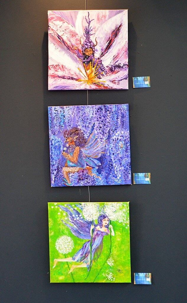 Gleichzeitig hat sie heute eine neue Ausstellung eröffnet. Vier Künstlerinnen (Ilona Heller, Daniela Hoppenkamps, Petra Emmerich, Christina Haupts) zeigen ihre Gemälde. Alle vier haben gerade ihr Diplom der Freien Kunstschule in Köln bekommen.