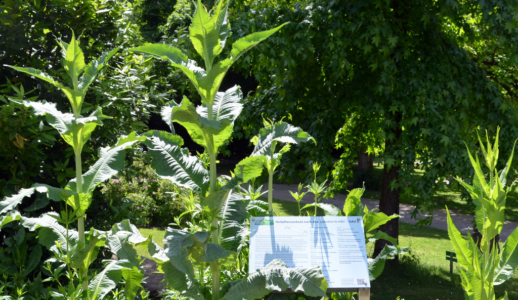 Von einem Mönch soll im Mittelalter die Engelwurz während der Pest zu den Menschen gebracht worden sein. Angeblich hat diese Pflanze die Pest besiegt. Daher der Name „Engelwurz“ oder „Angelica archangelica“. Während der großen Pestepidemie in Europa war sie in manchen Gegenden sogar in Gefahr, ausgerottet zu werden. Wie die meisten Doldengewächse ist auch diese Pflanze verdauungsfördernd. Aber Vorsicht: Sie kann fototoxische Reaktionen hervorrufen. Die Haut bekommt Blasen, und es dauert lange, bis der Ausschlag verschwunden ist. Daher von Carmen Dörner der wichtige Hinweis, keine der Pflanzen im Heilpflanzenbeet gedankenlos anzufassen. Eine ganze Reihe von ihnen kann zu allergischen Reaktionen führen.