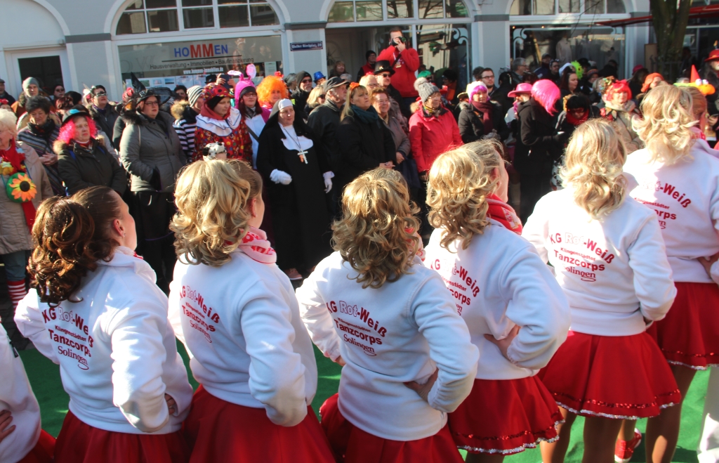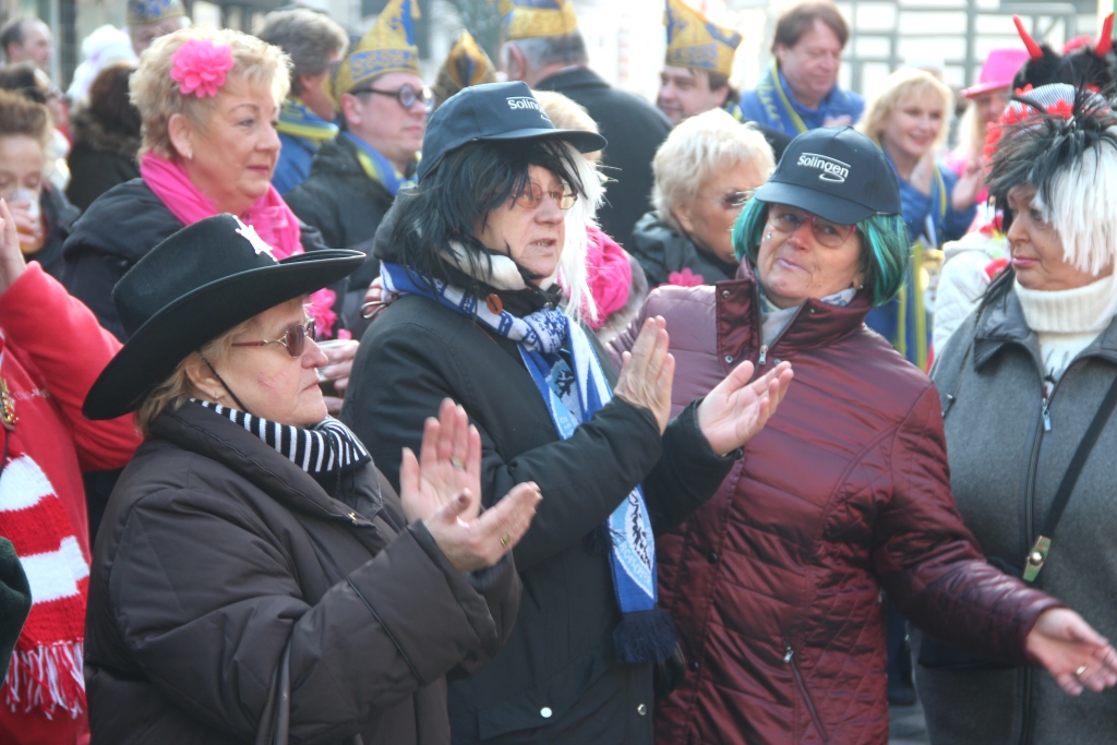 Übrigens: Wer wollte, der konnte auch wieder in Ohligs feiern. Denn ab 11.11 Uhr schunkelten auf der Düsseldorfer Straße ebenfalls wieder die Möhnen. Jetzt hoffen Solingens Närinnen und Narren, dass am kommenden Montag wieder so tolles Wetter sein wird, wie zur Weiberfastnacht. Denn dann schlängelt sich der Rosenmontagszug durch die Solinger City.
