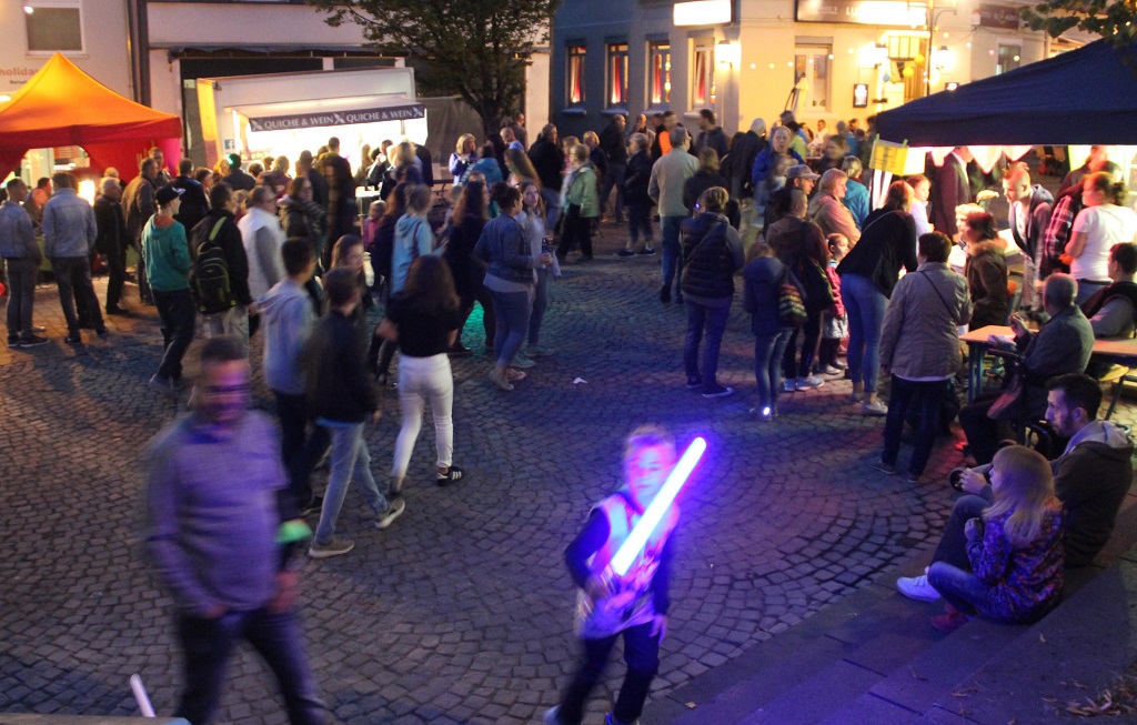 „Wald leuchtet“ bot zahlreiche kunterbunte und stimmungsvolle Attraktionen auf dem Kirchplatz und drumherum. „Es machen insgesamt 40 Einrichtungen mit, die alle ein kleines Programm vorbereitet haben“, erklärte Peter Wirtz, Leiter der Friedrich-Albert-Lange-Schule. So hatten zahlreiche Einzelhändler ihre Geschäfte bis Mitternacht geöffnet. Viele Ladeninhaber verwöhnten ihre Besucher mit speziellen Aktionen.