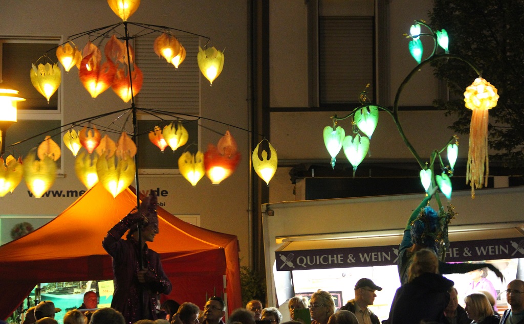 Gleichzeitig gab es auf der kleinen Bühne auf dem Kirchplatz ein berauschendes Musik-Programm, das die vielen Zuschauer begeisterte. Entlang der Friedrich-Ebert-Straße hatten zahlreiche Ladeninhaber nicht nur geöffnet, sondern ihr Angebot auf den Bürgersteig verlegt. Entsprechend lebendig ging es dort zu. „Das ist große klasse, was in den Läden passiert. Und das trägt ja auch das Fest, dass der Einzelhandel das nutzt“, freute sich Peter Wirtz. „Wald leuchtet“ wurde von den Walder Theatertagen und dem Walder Werbering organisiert.