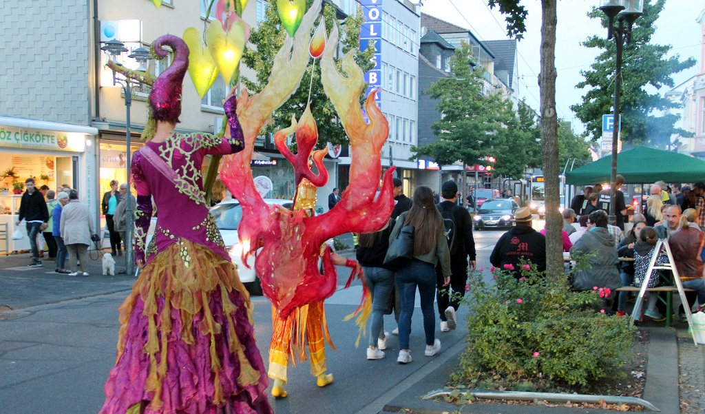 Etwas abseits der Hotspots bot die Kirche St. Katharina an der Weyerstraße ein Chorkonzert. Musikalische Leckerbissen gab es zudem in der ebenfalls geöffneten evangelischen Kirche. Dort wurden auch Märchen für die vielen Kinder vorgetragen. Und hungrig musste auch niemand das bunte Fest verlassen. Mit Waffeln, Chili, Würstchen sowie Zwiebelkuchen und vielen Leckereien mehr war bestens für das leibliche Wohl gesorgt. „Es ist wirklich schön, dass hier so ein Publikumszuspruch ist“, zeigte sich Peter Wirtz am Abend begeistert von den vielen Besuchern. Und diese waren ihrerseits hochzufrieden mit einem Kultur-Programm, das allen Sinnen schmeichelte.