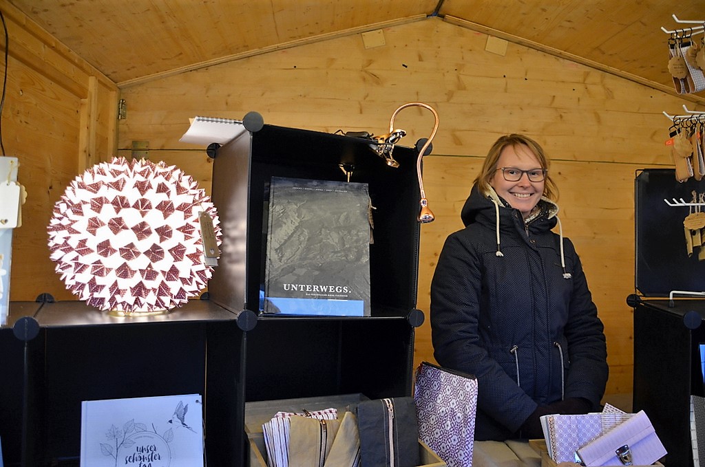 Grafikerin Annkathrin Dahlhaus (ACD.SHOP) bietet mit ihrer kreativen Papeterie Schmuck, Lampen und Bücher an. Besonders die Kugellampen sind ein echter Hingucker. „Die Lampen entstehen aus kleinen gefalteten Himmel-und-Hölle-Spielen. Diese werden auf eine Reispapierkugel geklebt.“ Wer sich die Arbeit selbst machen möchte, bekommt bei Dahlhaus mittlerweile die Lampe in sechs verschiedenen Farben als Bausatz.