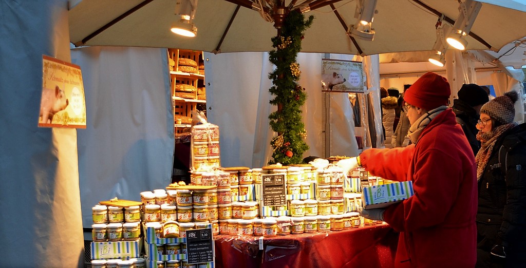 Eine hervorragende Gastronomie sorgt für erlesene Genüsse. Es duftet nach Glühwein und heißen Maronen. Man kann sich stärken mit Raclette, Ritterspießen, Flammlachs und Elsässer Flammkuchen. Ganz neu dabei ist die Knödelei. Als gesunden Snacks für Zwischendurch bietet „Lebe gesund“ köstliche getrocknete Apfelchips ohne Zusätze an.