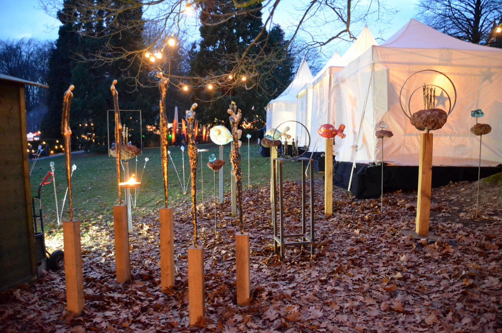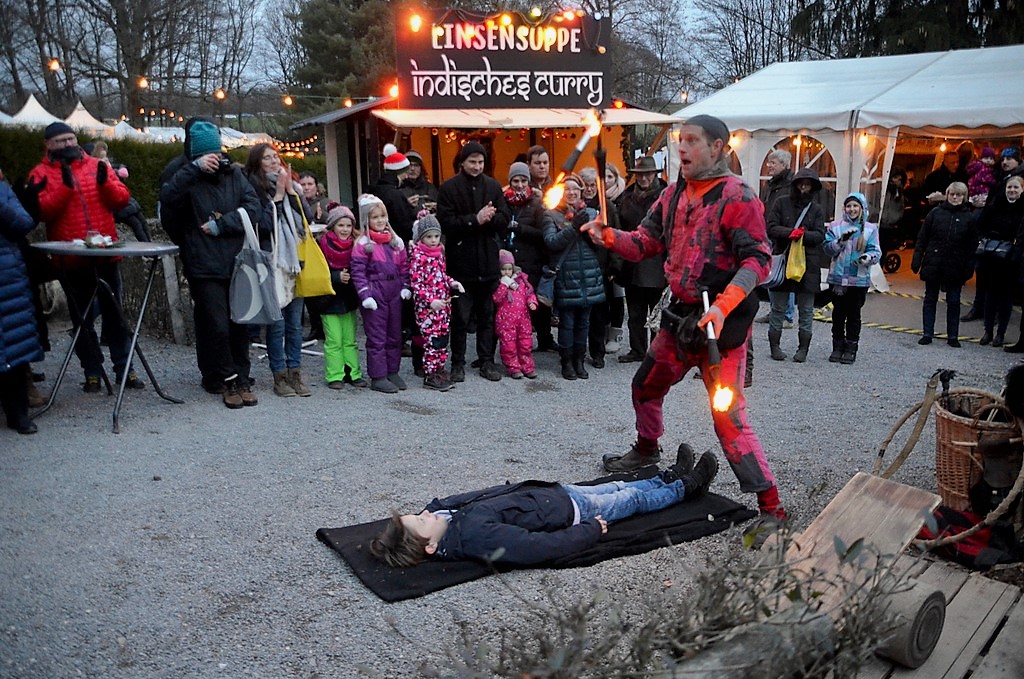 Statt der vielerorts üblichen Weihnachtsmusik von CD, die durch Lautsprecher über den Platz schallt, liegen hier klassische Klavierklänge in der Luft. Die illuminierte Parklandschaft mit Fackeln, Feuerkörben und rund 2.000 Meter Lichterketten taucht den gesamten Platz in ein zauberhaftes geheimnisvolles Licht. Ein Drechsler zeigt gekonnt, wie er aus Rundhölzern kleine Kunstobjekte erschafft. Vom Drachentöter gibt es einen Crashkurs im Armbrustschießen. Gaukler Kasper zeigt feurige Kunststücke und Jochen, der sprechende Elefant, treibt gerne seine Späße mit den Besuchern.