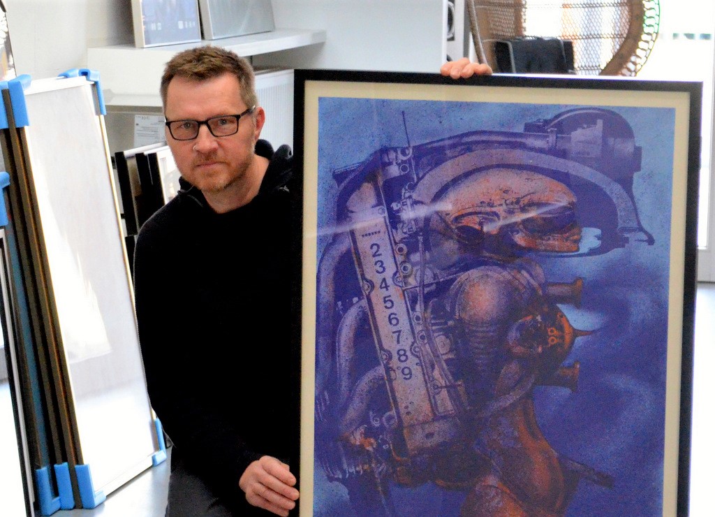 In einer ZDF-Dokumentation „Das phantastische Universum des HR Giger“ hörte Jörg Czwikla zum ersten Mal von dem Schweizer Künstler. Das sei für ihn ein einschneidendes Erlebnis gewesen, erinnert sich der Sammler. „Mich fesselt an den Werken von Giger vor allem das Düstere und das Mechanische. Je länger man die Arbeiten anschaut, desto mehr Details findet man darin.“ Seine Sammelleidenschaft begann mit dem Kauf von Lithografien. „Heutzutage kommt man nur noch schwer an Exponate“, erklärt der Giger-Kenner. „Für große Werke muss man schon eine sechsstellige Summe zahlen.“ Czwiklas Frau Caren teilt die Leidenschaft ihres Mannes für Giger. „Für mich sind diese Arbeiten gar nicht düster oder deprimierend.“ 1991 waren beide zu einer Ausstellung nach Davos gefahren und hatten den Künstler dort persönlich kennengelernt.