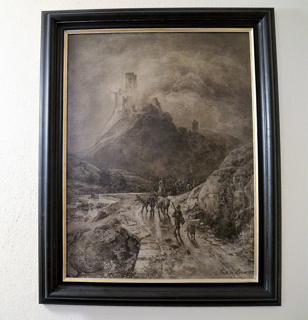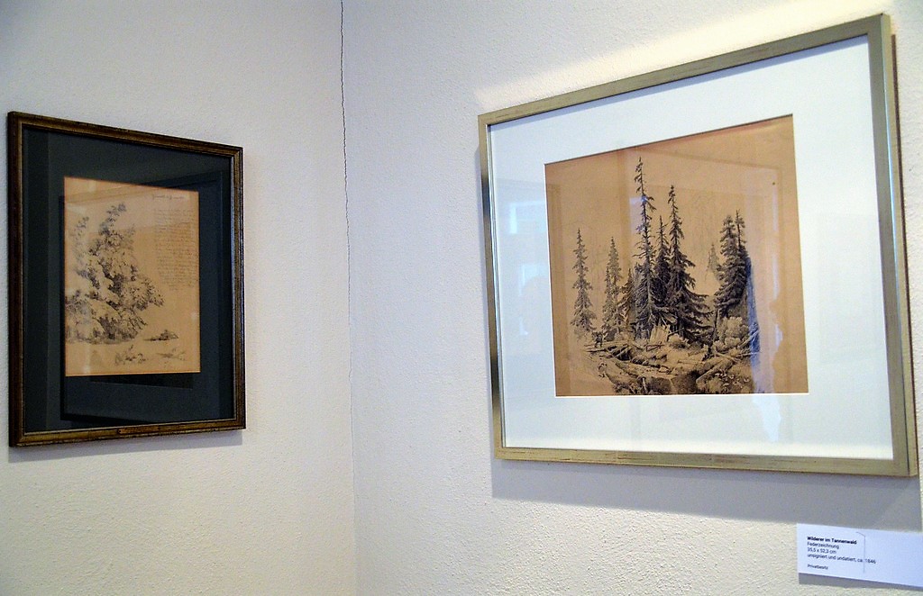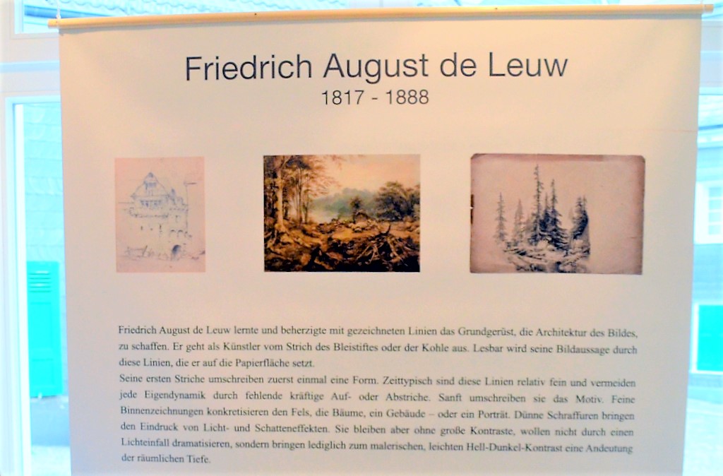 SOLINGEN (mh) – Es ist eine eindrucksvolle Ausstellung, die der Gräfrather Galerist und Kurator Dirk Balke in Kooperation mit dem Kunstmuseum und der Stadt-Sparkasse Solingen auf die Beine gestellt hat. Sie zeigt den berühmten Solinger Friedrich August de Leuw (1817 – 1888) als großartigen Zeichner und Ausnahmekünstler, der neben Porträts und Tierstudien hauptsächlich Landschaften, oftmals aus seiner nächsten Umgebung, als Motiv wählte. So beispielsweise ein kleines unsigniertes und undatiertes Aquarell von Schloss Caspersbroich.