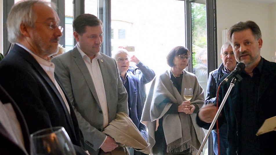 Balke dankte in seiner kurzen Ansprache vor allem dem Ehepaar Rixen, das für diese besondere Ausstellung gerne die Räume im Fach-Werk-Haus zur Verfügung gestellt hatte. Im Jahr 2007 hatten Susanne und Edgar Rixen das Fach-Werk-Haus am Küllersberg 3 erworben und umfangreich sanieren lassen. Dafür erhielt das Paar 2009 den Denkmalschutzpreis des Bergischen Geschichtsvereins.