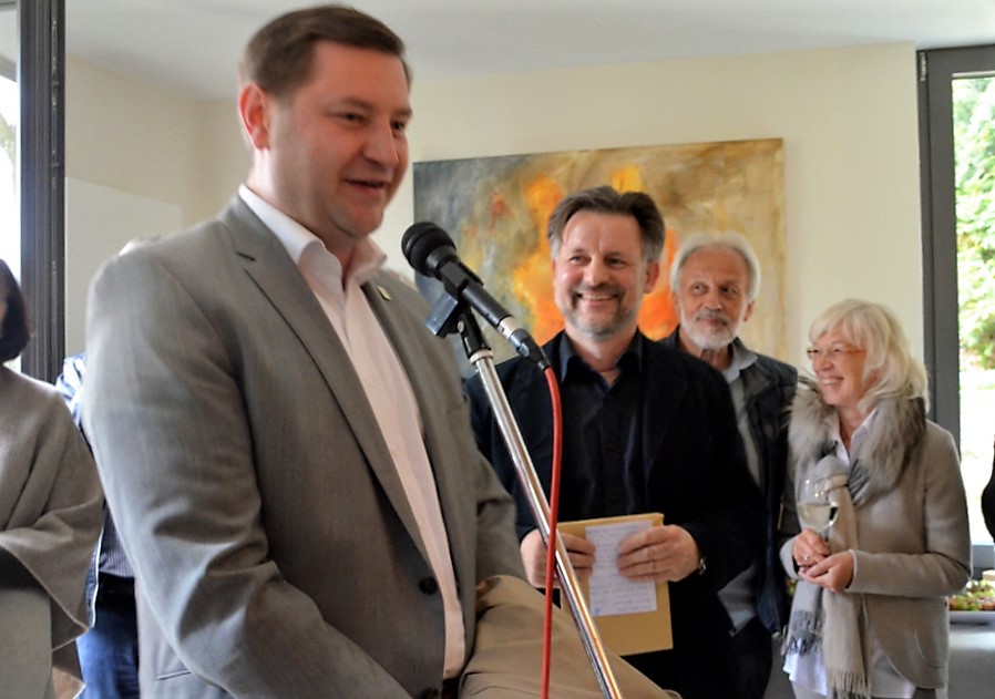 Auch Oberbürgermeister Tim Kurzbach war zur Vernissage gekommen. „Ich bin der Einladung Dirk Balkes zu der hervorragenden Ausstellung, die sich mit Friedrich August de Leuw befasst, sehr gerne gefolgt, nicht zuletzt, weil ich weiß, mit welcher Begeisterung und großem Elan sich Balke das Thema de Leuw zu Eigen gemacht hat. Mein Dank gilt allen, die sich diesem besonderen Erbe Gräfraths verschrieben haben. Dazu gehört natürlich auch das Ehepaar Rixen, das uns in dieses wunderbare Fach-Werk-Haus eingeladen und die Präsentierung möglich gemacht hat.