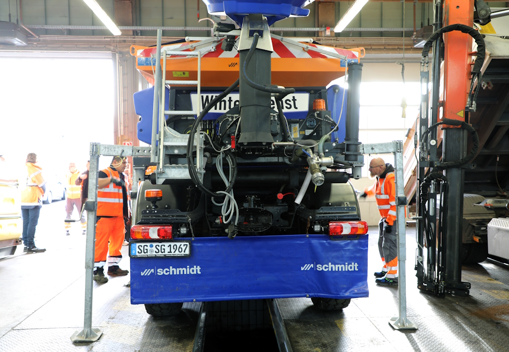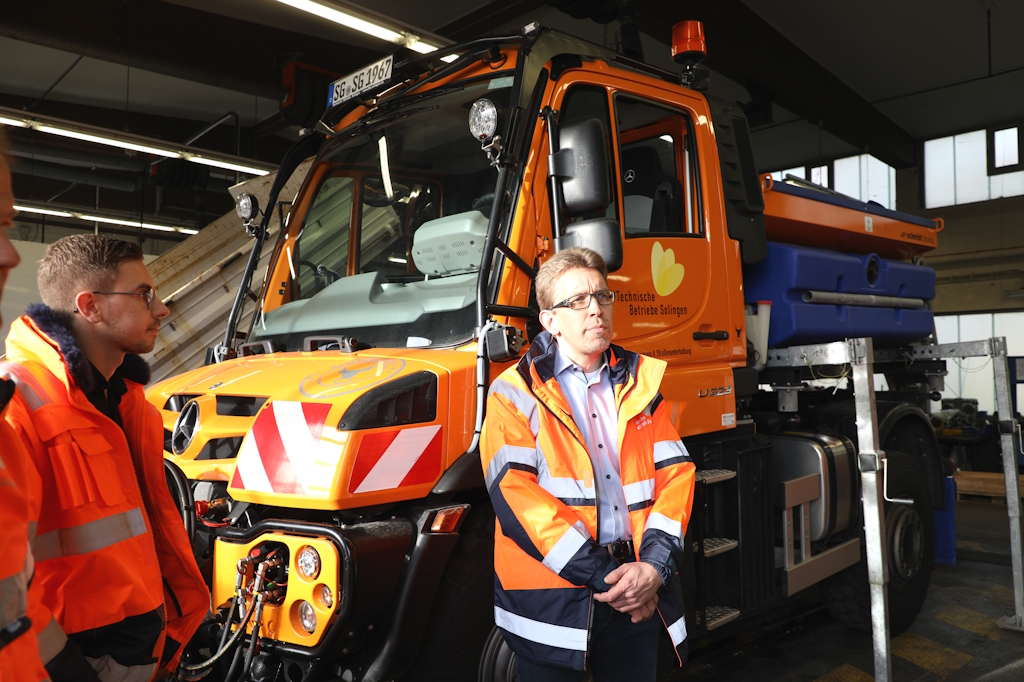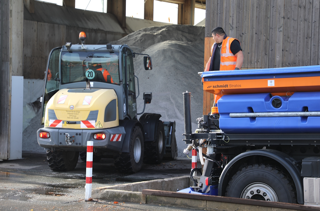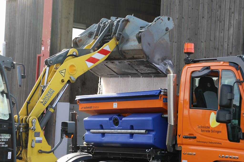 SOLINGEN (bgl) – Noch zeigt sich der November von seiner milden Seite, doch bei den Technischen Betrieben Solingen (TBS) laufen die Vorbereitungen für den Winterdienst bereits auf Hochtouren. Auf dem Betriebshof an der Dültgenstaler Straße haben die Mitarbeiterinnen und Mitarbeiter in den vergangenen Wochen Fahrzeuge gewartet, Salzvorräte überprüft und Einsatzpläne abgestimmt. Am Mittwoch luden die TBS die Medien zu einem Ortstermin ein, um einen Einblick in die Arbeit hinter den Kulissen zu geben.
