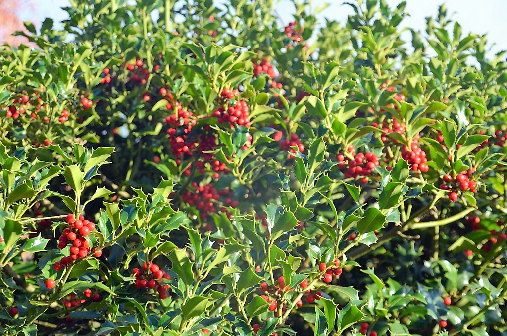 Während des ganzen Jahres ist der Ilex als immergrünes Gehölz eine Augenweide. Jetzt aber zieht er mit seinem roten Beerenschmuck alle Aufmerksamkeit auf sich. (Foto: © Martina Hörle)