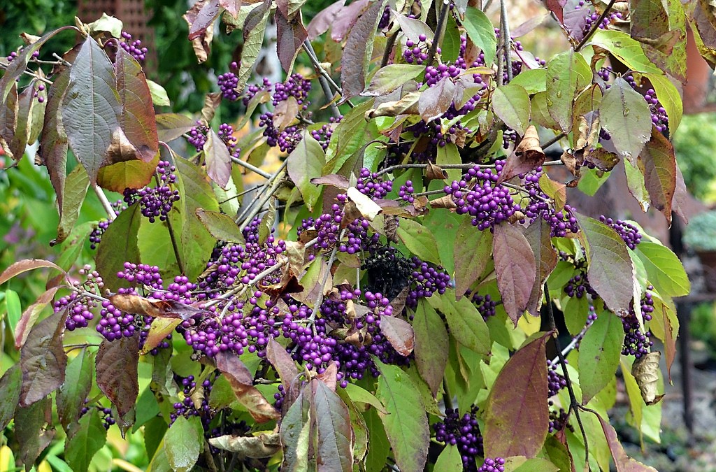 SOLINGEN (mh) – Die Natur zieht vor ihrer Ruhephase noch einmal alle Register. Während der Liebesperlenstrauch zwar schon im Sommer seine Blüten öffnet, doch recht unspektakulär wirkt, hat er im Herbst mit einer üppigen lilafarbenen Beerenpracht seinen großen Auftritt. Die meist rosafarbenen Rispenblüten werden von Hummeln, Bienen und Schmetterlingen oft und gerne besucht – eine wirkliche Bienenweide. Jetzt ist es die Vogelwelt, die sich trotz der ungewöhnlichen Färbung an den erbsengroßen Beeren gütlich tut. Vor allem Drosseln und Meisen schätzen die glänzenden Früchte.