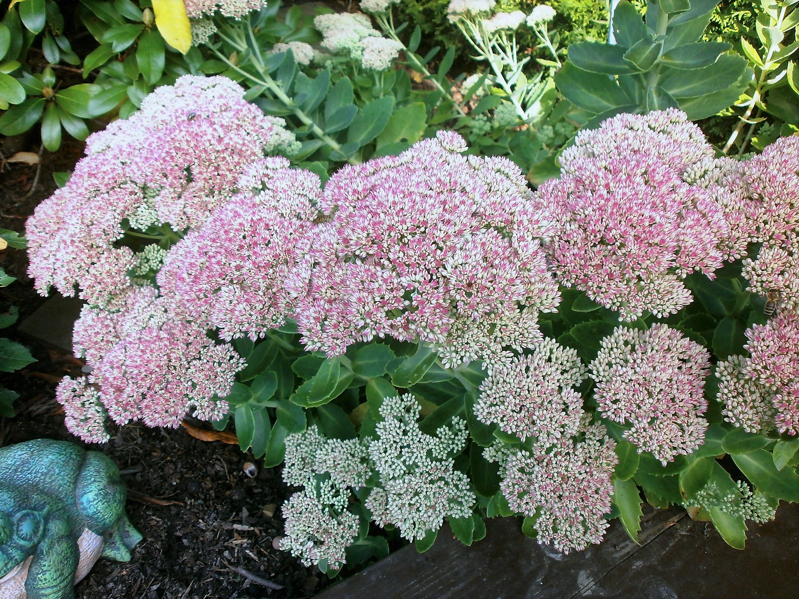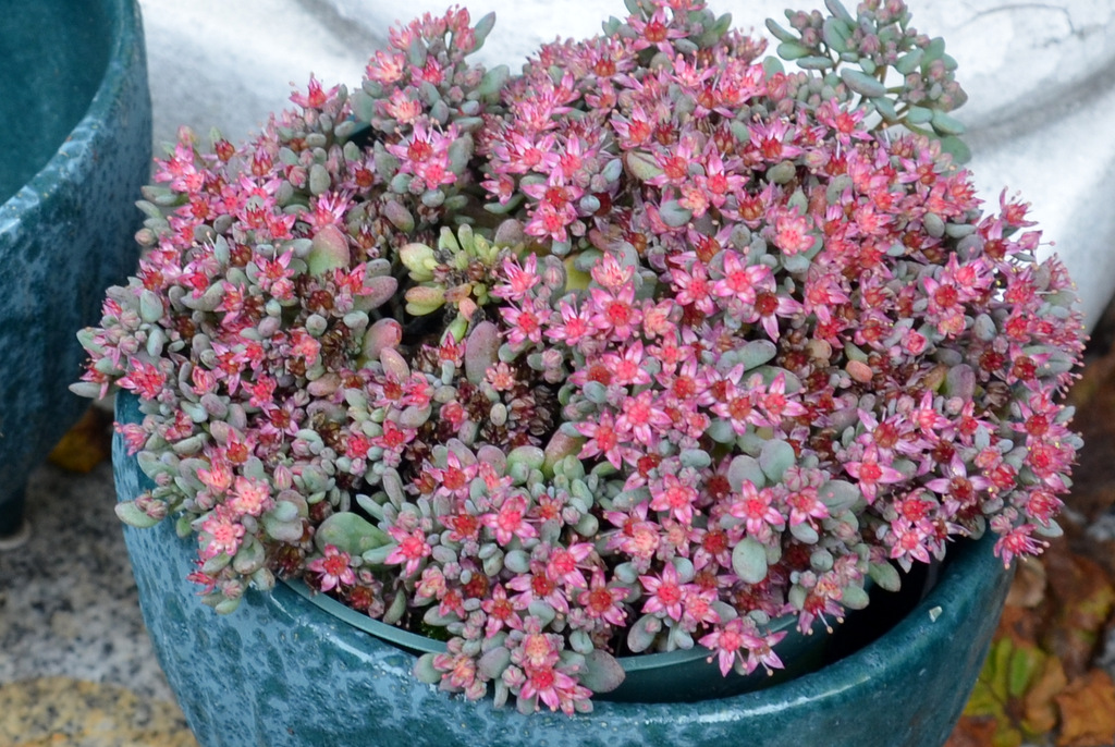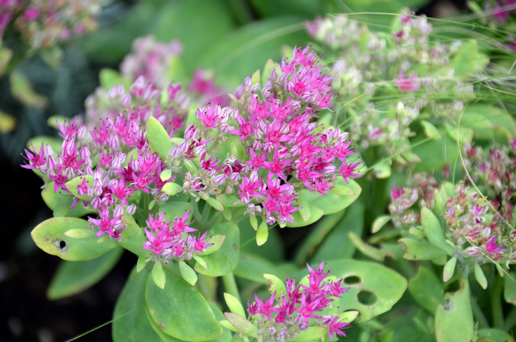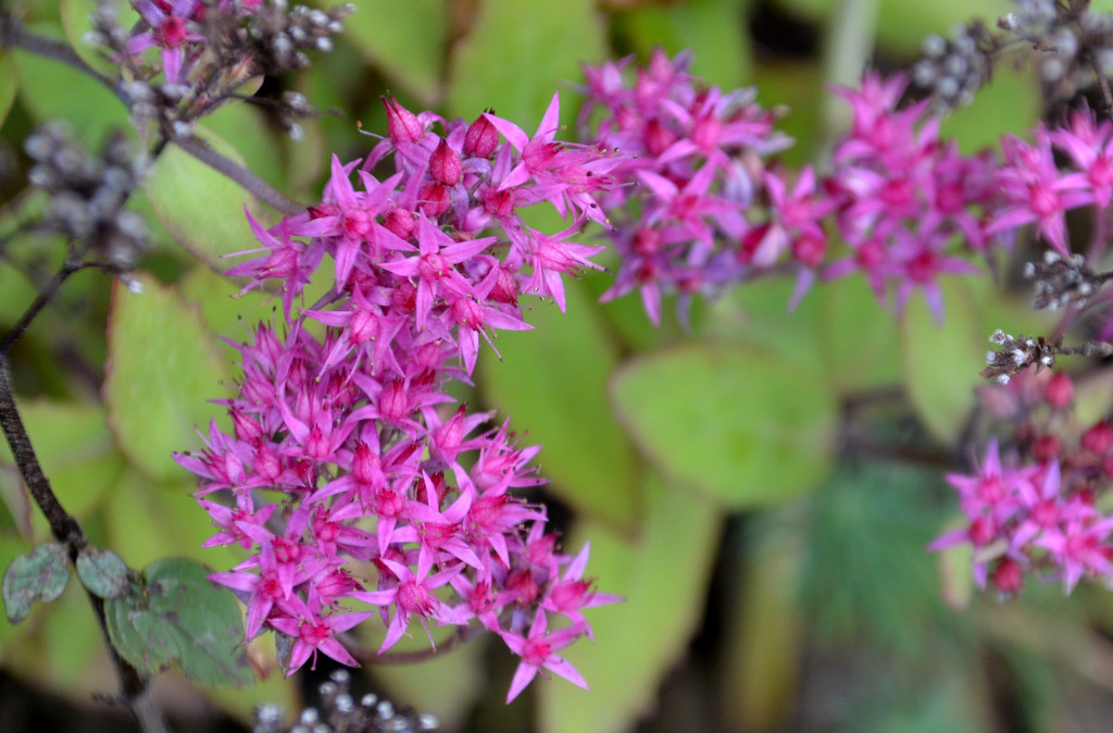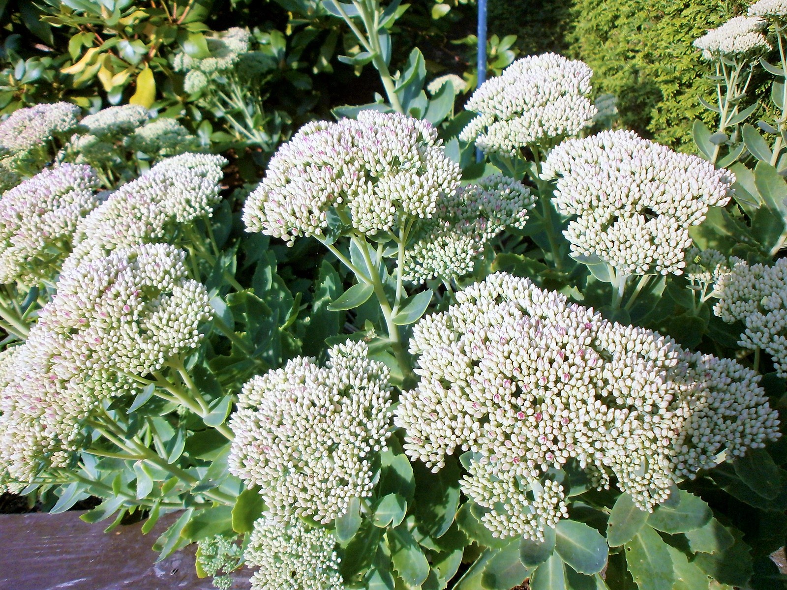 Die Hohen Fetthennen geben wunderbare Kübelpflanzen ab und bieten auch noch in der kalten Jahreszeit einen aparten Anblick. Beliebt ist vor allem die in Deutschland heimische spätblühende Hohe Fetthenne („Sedum Telephium-Hybride ‚Herbstfreude‘), deren große braunrote Dolden aus vielen sternförmigen Einzelblüten besteht. Mit Reif überzogen wirken die Gewächse ausgesprochen edel. Deshalb schneidet man sie erst im Frühjahr. Ihre Wuchshöhe kann bis zu 70 cm betragen. Als Beetstauden lassen sie sich hervorragend mit anderen Arten gruppieren oder mit Astern und Ziergräsern kombinieren. Während der Blühperiode sind sie absolute Schmetterlingsmagnete und wertvolle Nahrungsquellen für Insekten. Die Große Fetthenne ist vor allem beim Fetthennen-Bläuling beliebt, der vorwiegend hier seine Eier ablegt.