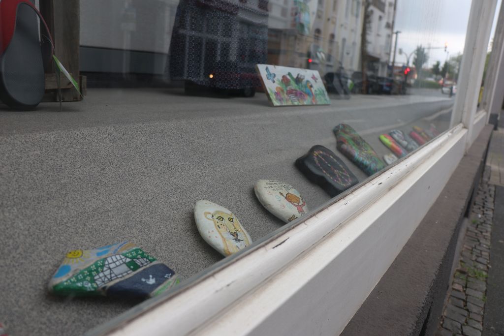 Es ist nicht das erste Mal, dass in den Schaufenstern des Sanitätshauses Köppchen Kunst zu sehen ist. „Wir hatten schon einmal so eine Aktion“, erzählt Miriam Gatawetzki-Köppchen. „Damals haben wir bekannte Solinger Künstler gefragt.“ Die Aktion kam so gut an, dass nun wieder Kunst in die Schaufenster eingezogen ist. Doch handelt es sich dieses Mal um die kunstvoll bemalten Wuppersteine, Wuppersteine-Kunst.