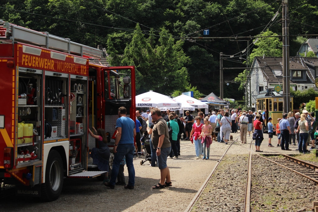 Auch die ausgestellten Modelle und Verkaufsstände der befreundeten verkehrhistorischen Arbeitsgemeinschaften sowie die anderer Vereine erfreuten sich zahlreicher Besucher. Für das leibliche Wohl sorgten neben den Museums- und Vereinsmitgliedern auch die Kameraden der Freiwilligen Feuerwehr Wuppertal-Hahnerberg.