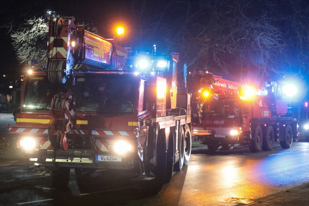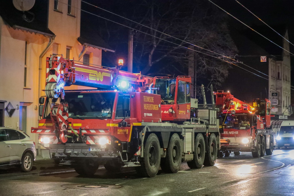 SOLINGEN (red) – Am Donnerstagabend ergab sich ein recht ungewöhnlicher Einsatz für die Feuerwehren in Solingen und in Wuppertal. Nach einem Einsatz an der Friedrich-Engels-Alle in Wuppertal fuhr der Kran der Solinger Feuerwehr auf dem Rückweg in die Klingenstadt durch Wuppertal-Vohwinkel.