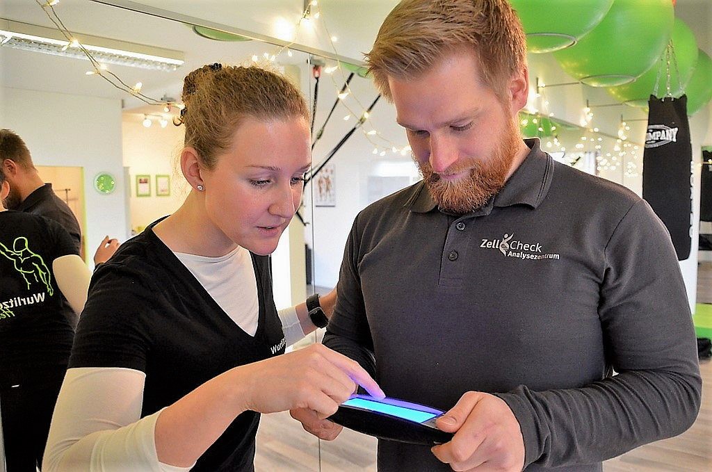 Derzeit ist sie intensiv damit beschäftigt, ihr Netzwerk auszuweiten. Es gibt bereits eine Kooperation mit Pascal Gitzen von Zell-Natur. Er hat sich vor einem knappen Jahr mit einer interessanten mobilen Dienstleistung selbstständig gemacht. Mit besonderen Messinstrumenten und einer speziellen Software misst der Lehrer für Fitness (Ernährungsberatung inbegriffen) verschiedene medizinische Daten direkt auf Zellebene. Eine Blutentnahme ist nicht erforderlich. Da sich die Messung unmittelbar auf die Zellen bezieht, ist sie nicht von Tagesmomenten abhängig. „Unsere Zellgesundheit hat viel mit unserer Leitungsfähigkeit zu tun“, erklärt Gitzen. „Mit Hilfe der Spektrophotometrie können Spurenelemente, Mineralien, toxische Schwermetalle und oxidativer Stress genauer als im Blut bestimmt werden. Die Messergebnisse liegen schneller vor und ermöglichen unmittelbare therapeutische Maßnahmen.“ Das Zell-Check Diagnosesystem wurde 2014 als Medizinprodukt Klasse 2a zertifiziert.