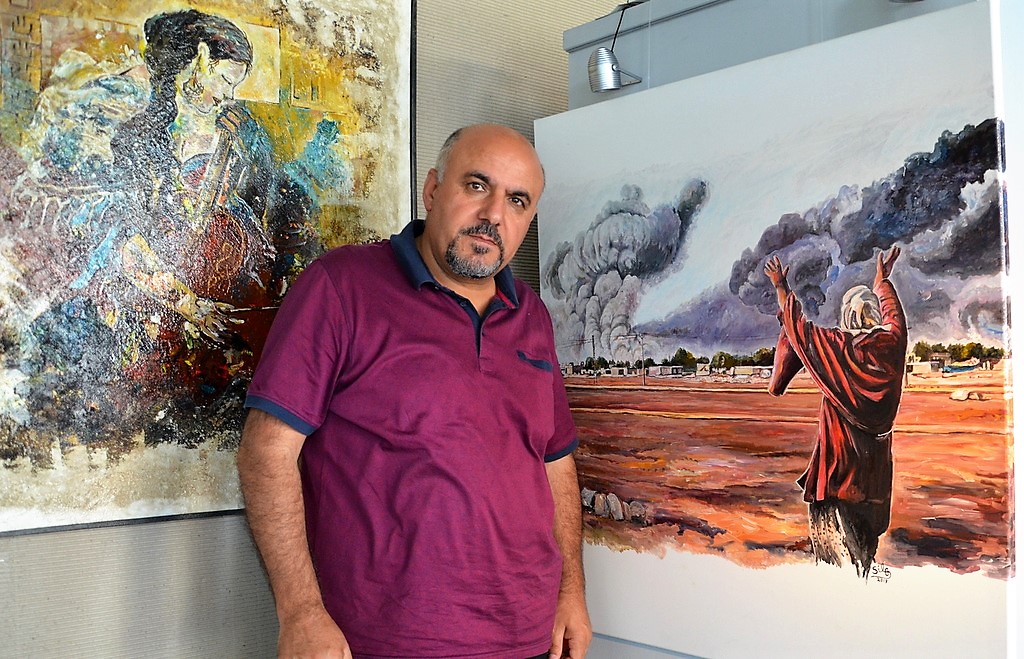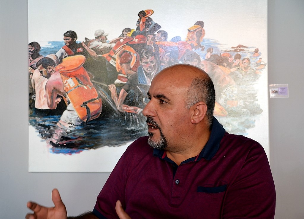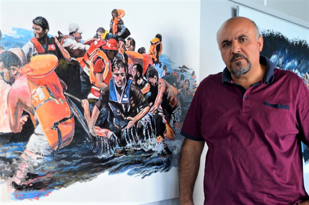 „Ich konnte nicht auf normale Weise ausreisen“, schildert Yahia Alselo seinen gefahrvollen Weg. „Mit Fluchthelfern bin ich hergekommen. Dafür haben sie viel Geld verlangt. Es war eine sehr gefährliche Bootsfahrt durch Minen. Ich musste meine Familie zurückgelassen. Als ich meinen Sohn zum ersten Mal in den Arm nehmen konnte, war er bereits drei Jahre.“ Mittlerweile hat der Künstler in Düsseldorf Fuß gefasst. Hier wohnt und arbeitet er.