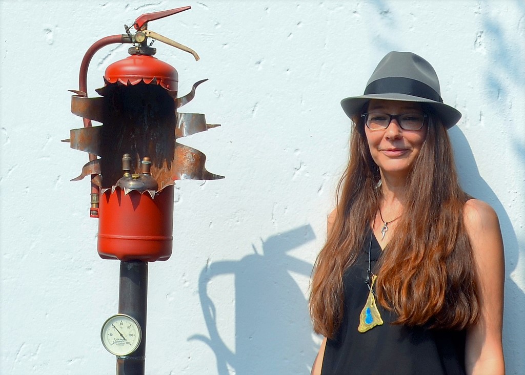 Patrick Mademann hat aus einem alten Feuerlöscher diese kuriose Öllampe entworfen. (Foto: © Martina Hörle)