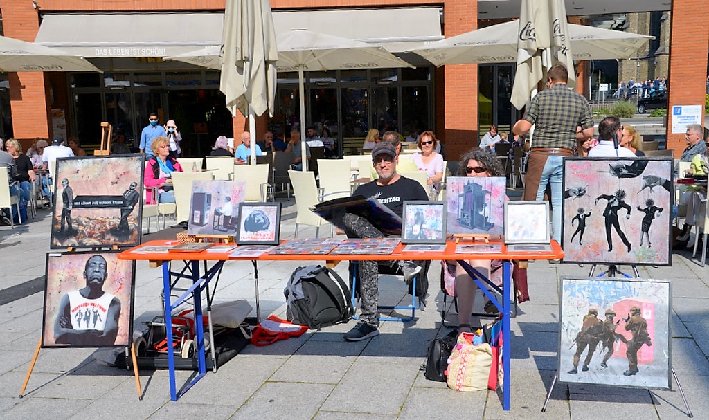 SOLINGEN (mh) – Getreu dem Motto „Kunst und Kultur ist bunt, vielfältig und weltoffen!“ fand am vergangenen Wochenende in den Clemens-Galerien zum 10. Mal Timm Kronenbergs City-Art-Project „48 h“ statt. Auch wenn in diesem Jubiläumsjahr nicht das übliche Cross-Over-Event mit Projekt- & Live-Kunst & Live Musik stattfinden konnte, sondern eine Corona geschuldete reduzierte Variante als Event, gab es trotzdem an beiden Tagen von 12 – 18 Uhr Kunst und Musik im Überfluss, gepaart mit großartiger Stimmung.